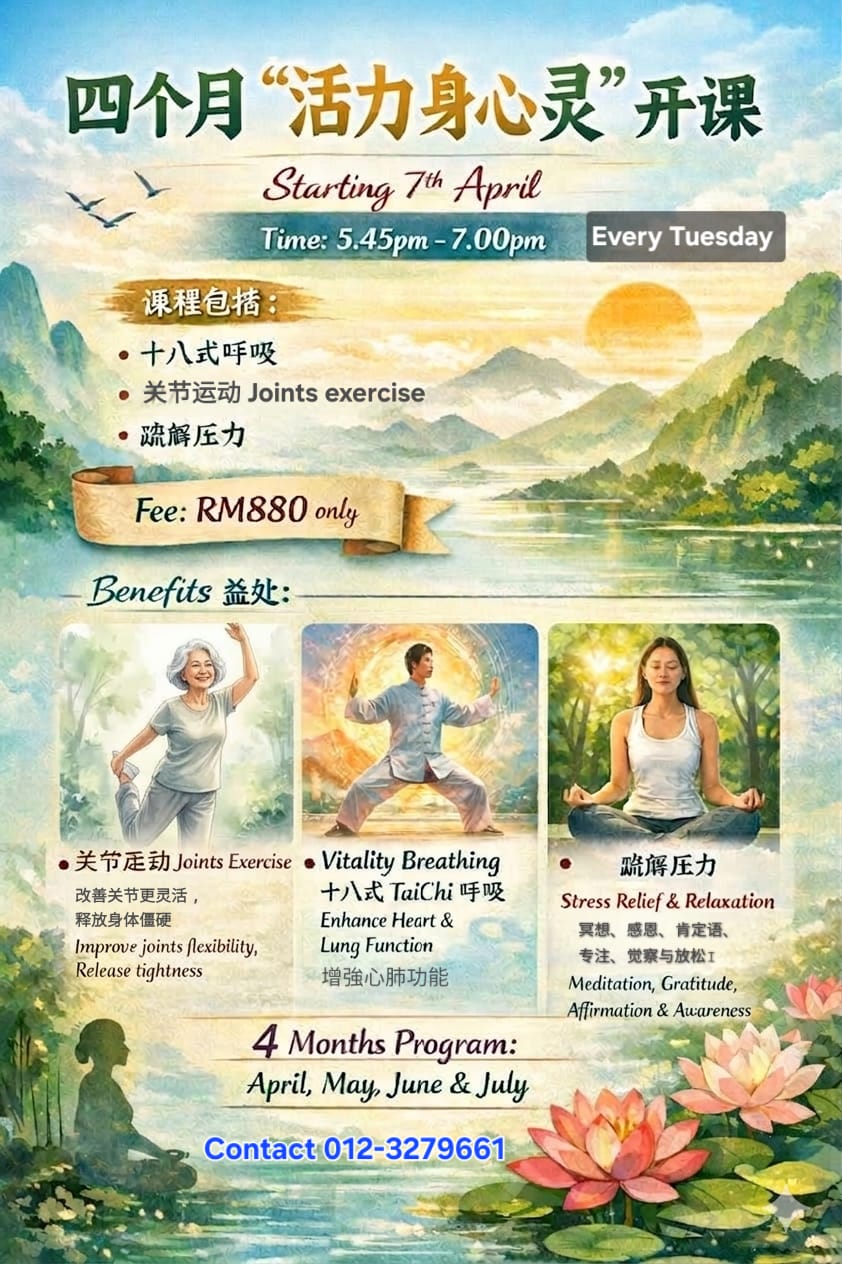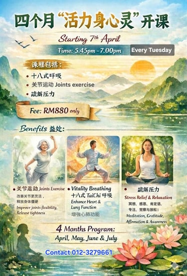 Taichi – graceful movements to improve balance, circulation, and inner strength, while easing tension and restoring harmony.