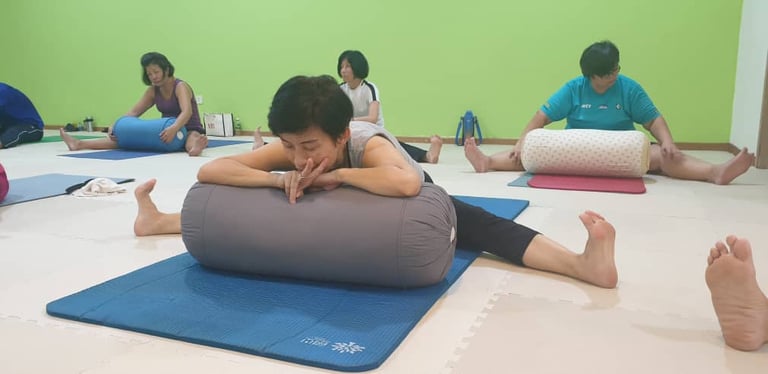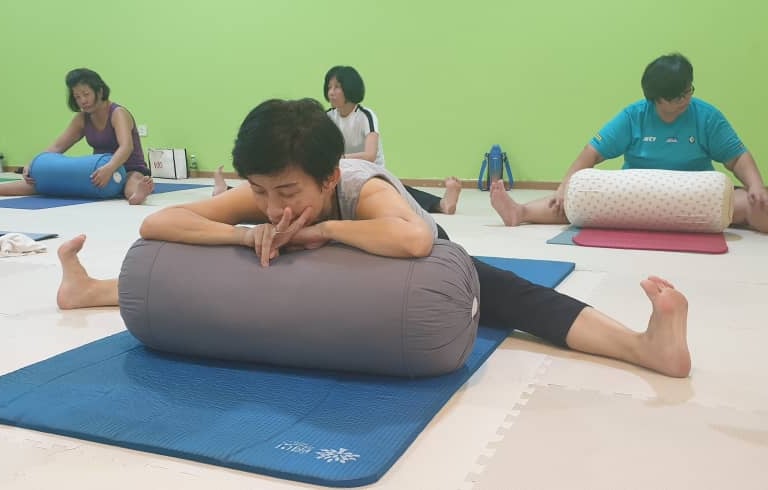 Experience deep relaxation and rejuvenation through our specialized yoga bolster exercises.